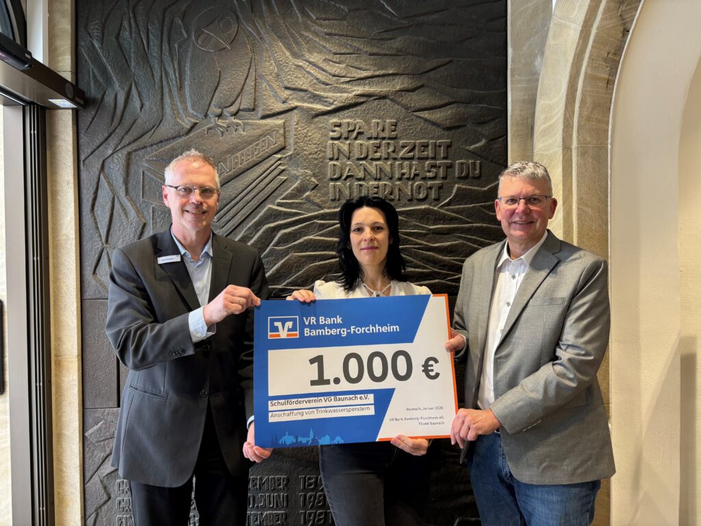 Über eine großzügige Spende der VR Bank Bamberg-Forchheim eG durfte sich kürzlich der Schulförderverein VG Baunach freuen. Im Rahmen einer symbolischen Scheckübergabe in der Filiale Baunach